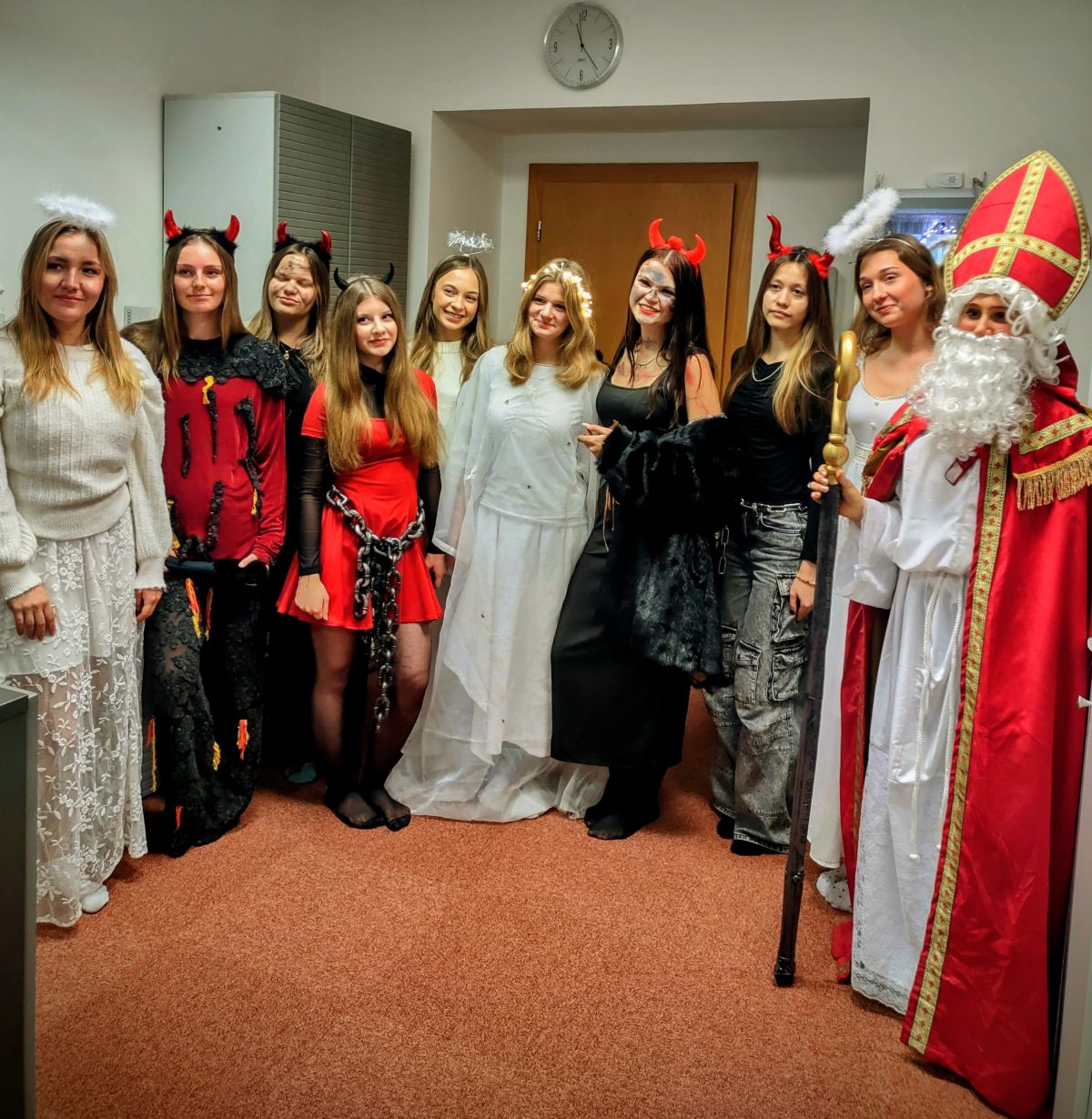 Dne 06.12 2021 žáci třídy II.PMP potěšili děti v azylovém domě pro matky s dětmi v Mladé Boleslavi – Čejeticích mikulášskou nadílkou. Mikuláš, anděl i čert rozdávali těm nejmenším dětem sladkou odměnu, aby se jim tak zpříjemnila doba čekání na Ježíška. Na závěr si všichni společně zazpívali koledu, která navodila tu pravou vánoční atmosféru. Více fotografií ve Fotogalerii 2021/2022.